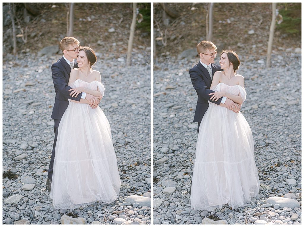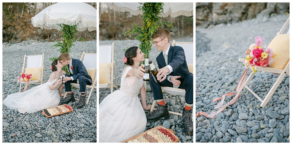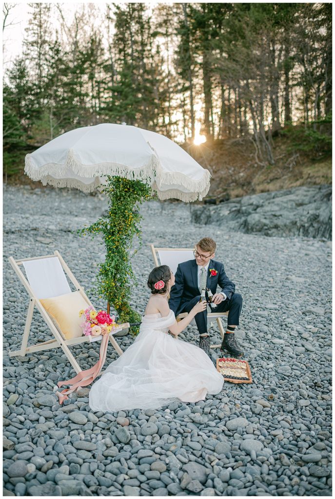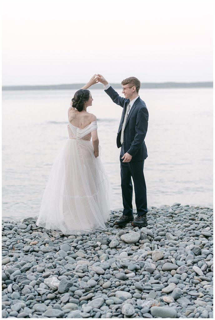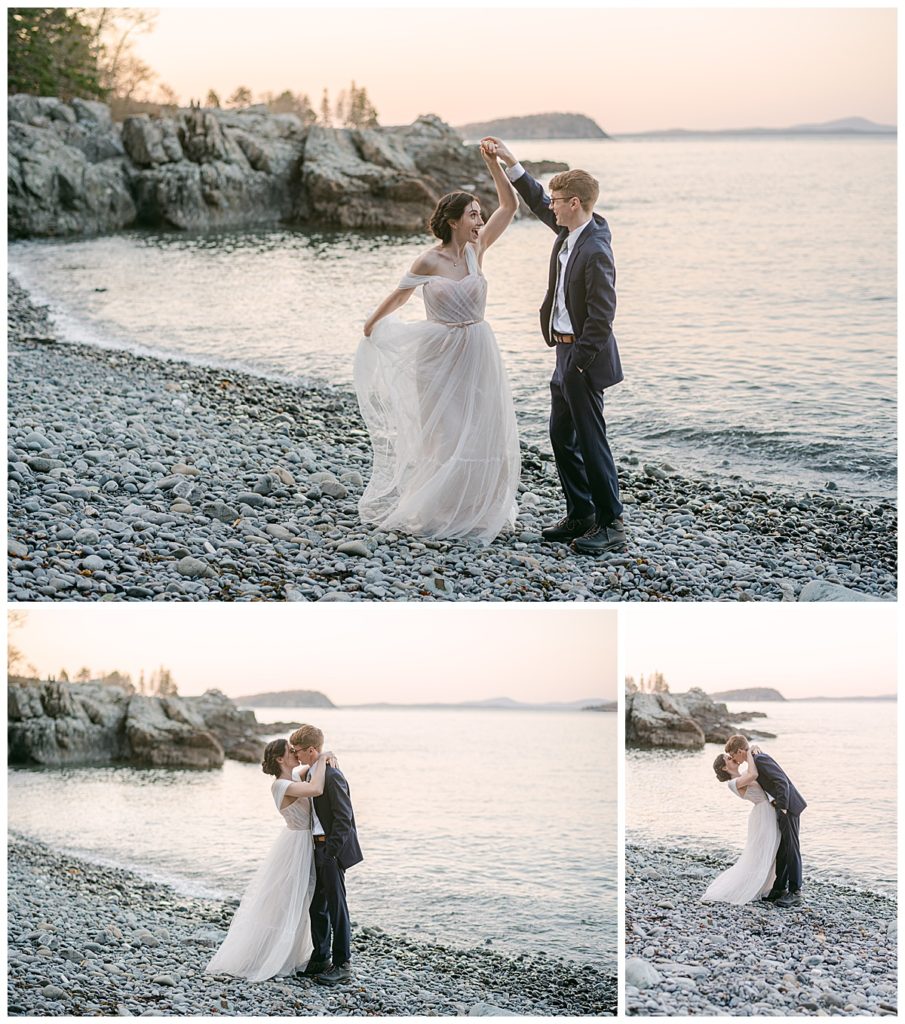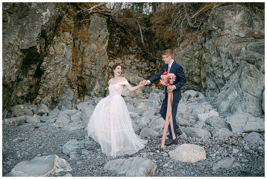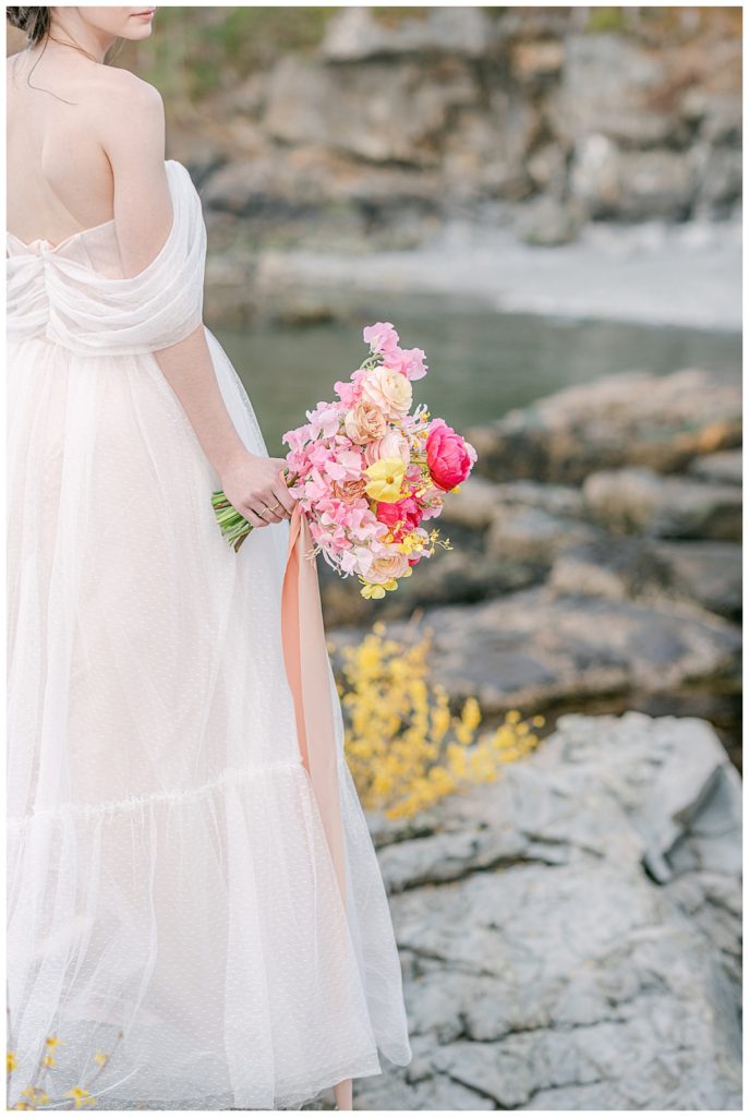 I joined a talented team of creatives to capture this gorgeous real elopement in Bar Harbor, Maine. Meet Kristen and Daniel! They traveled from Massachusetts with their immediate family and it was such a perfect day for them to say I DO! The florals were stunning and I could not get enough of all the fun details that went along it! Her father walked her down the rocks and also performed the services and it was so special with some laughs and tears. They also brought along their adorable pups, Zooey and Charlie who wore beautiful floral collars for their mom and dad! Kristen wore the cutest converse sneakers so she could easily navigate on the cliffs and rocks. It definitely made for some fun dancing photos! We were blessed with some of most gorgeous vies and scenery Maine has to offer.