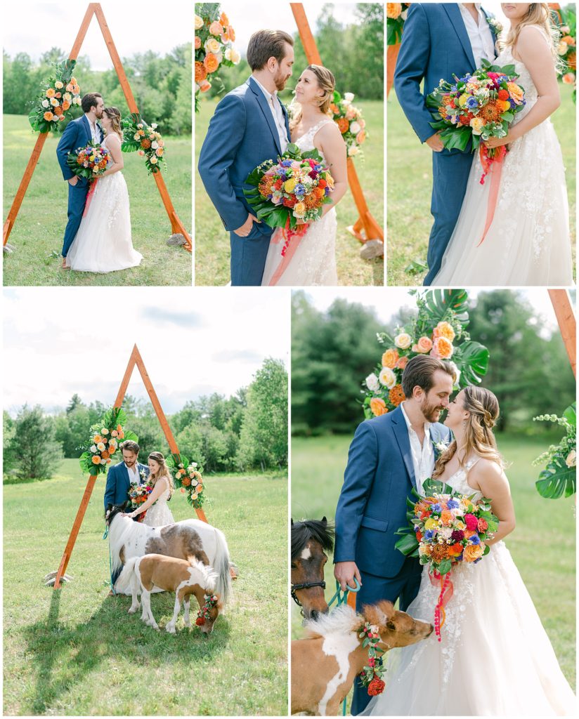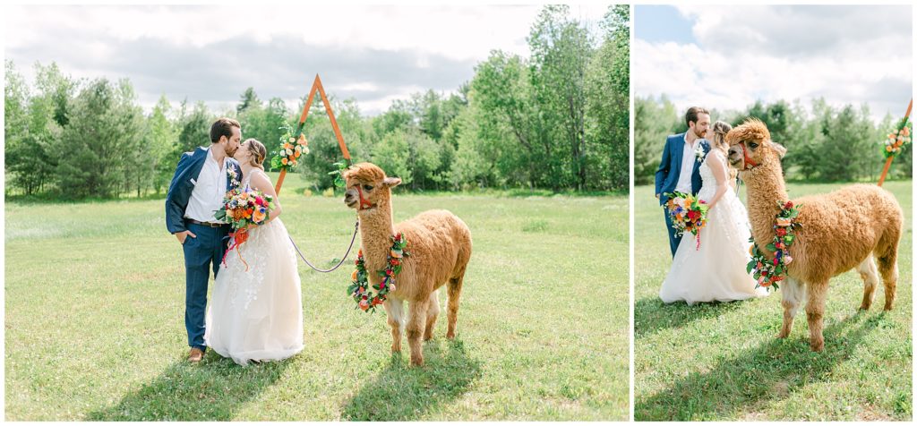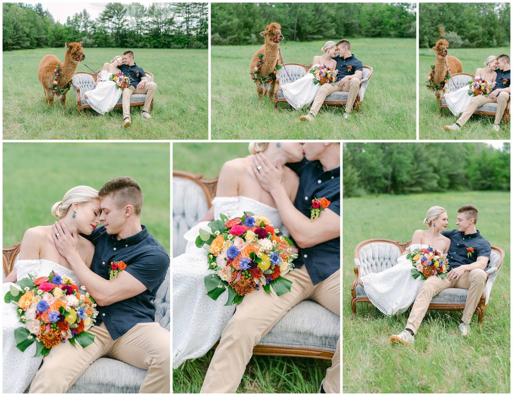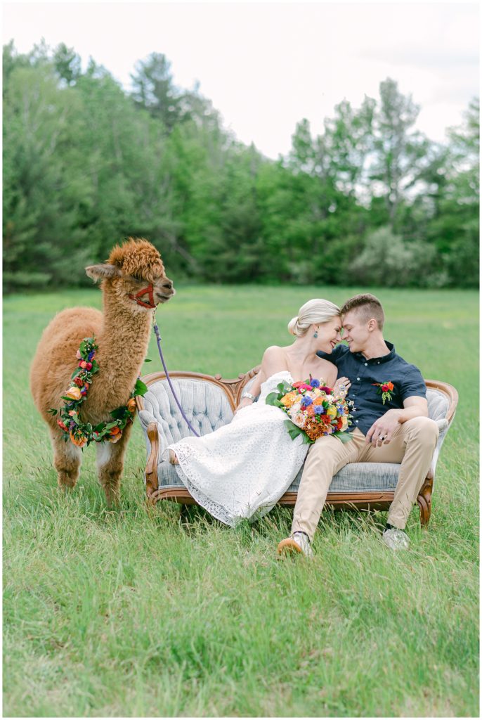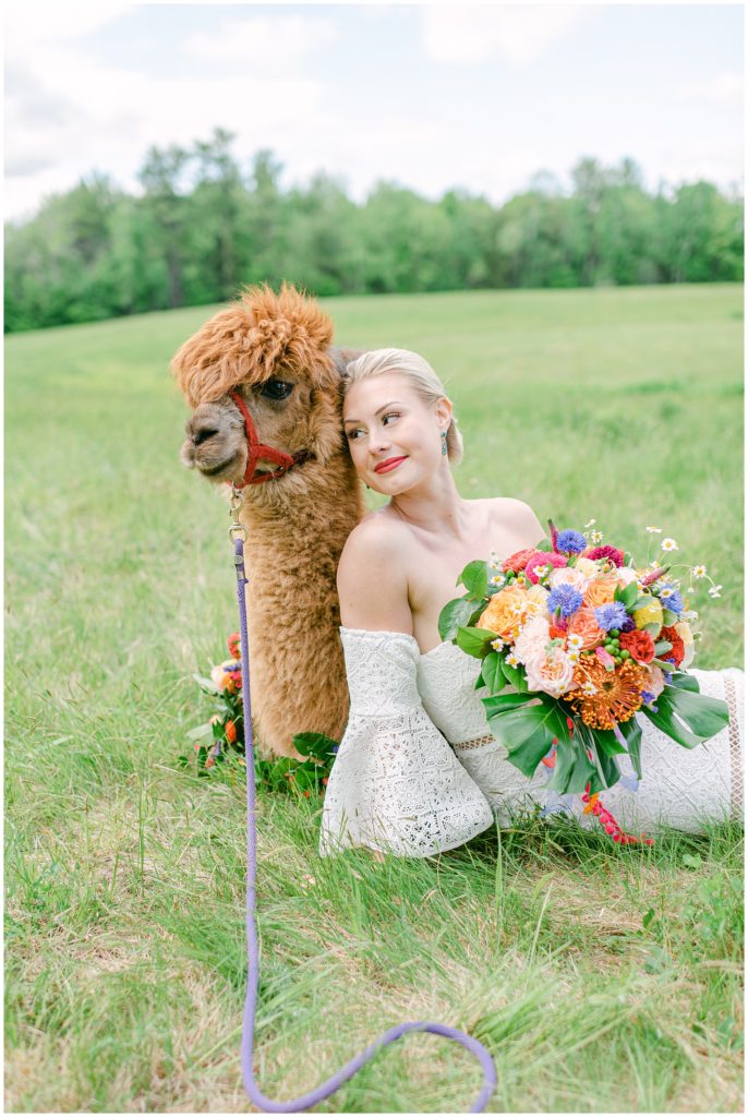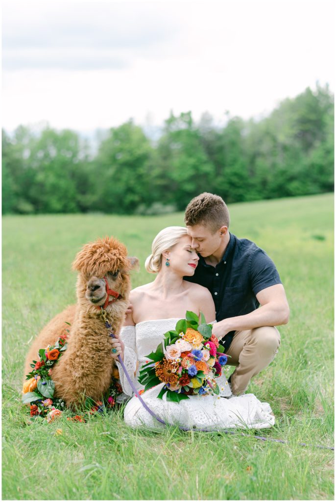 So I spent my day photographing three sweet couples in different settings and it was so much fun! It almost felt like a speed wedding date! But I was able to let my creative juices flow and have fun with all my couples. So even though this isn’t a real elopement, they are all real couples and all in love! I had so much fun frolicking with them (and the horses)! But mostly, I enjoyed being able to step out of my comfort zone and capture different angles and poses that I usually don’t. Anyway, the alpacas name is BOO BOO, how cute is that? I couldn’t get enough of her! There is something about a rustic farm wedding that just brings all the cool vibes with it! I loved the vibrant yet boho vibe of the day! It definitely got me through the covid depression and some fun content to capture!