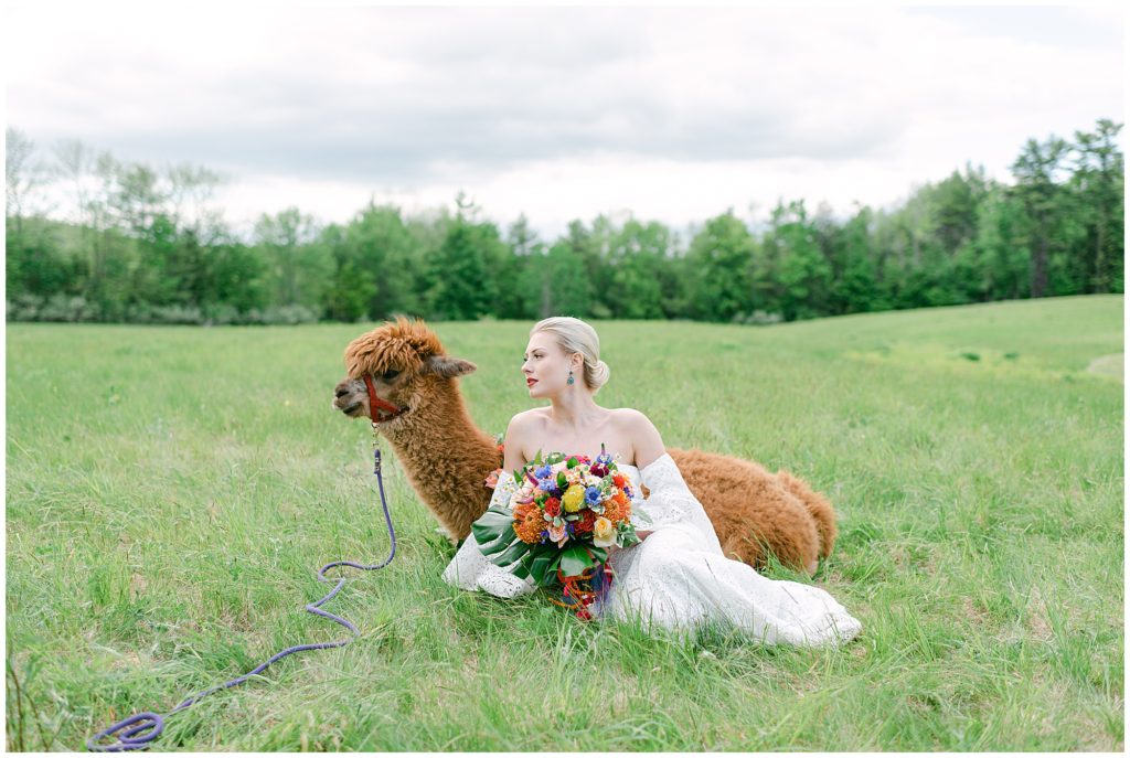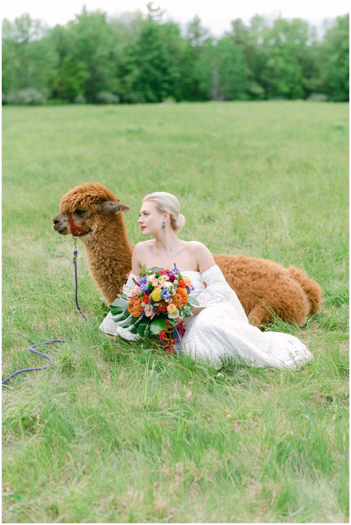 So it was spring of 2021 and due to covid many of my elopements and weddings had once again been pushed back. I was itching to get out to photograph anyone and anything pretty! Then this Fiesta styled content day shows up on my instagram in February. It was an opportunity to photograph a few styled elopements at the Whitney Farm Estate in Oxford, Maine and they said there would be alpacas and other farm animals! So I said, “I’m in”!